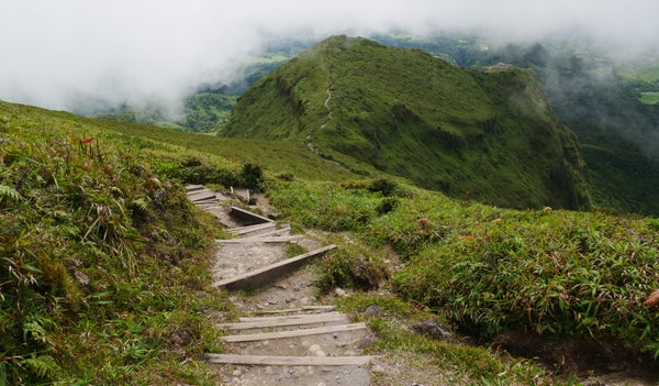 Op de achtergrond torenen puntige pytons hoog boven de rest van het landschap uit en herinneren me constant aan de vulkanische oorsprong van het eiland.